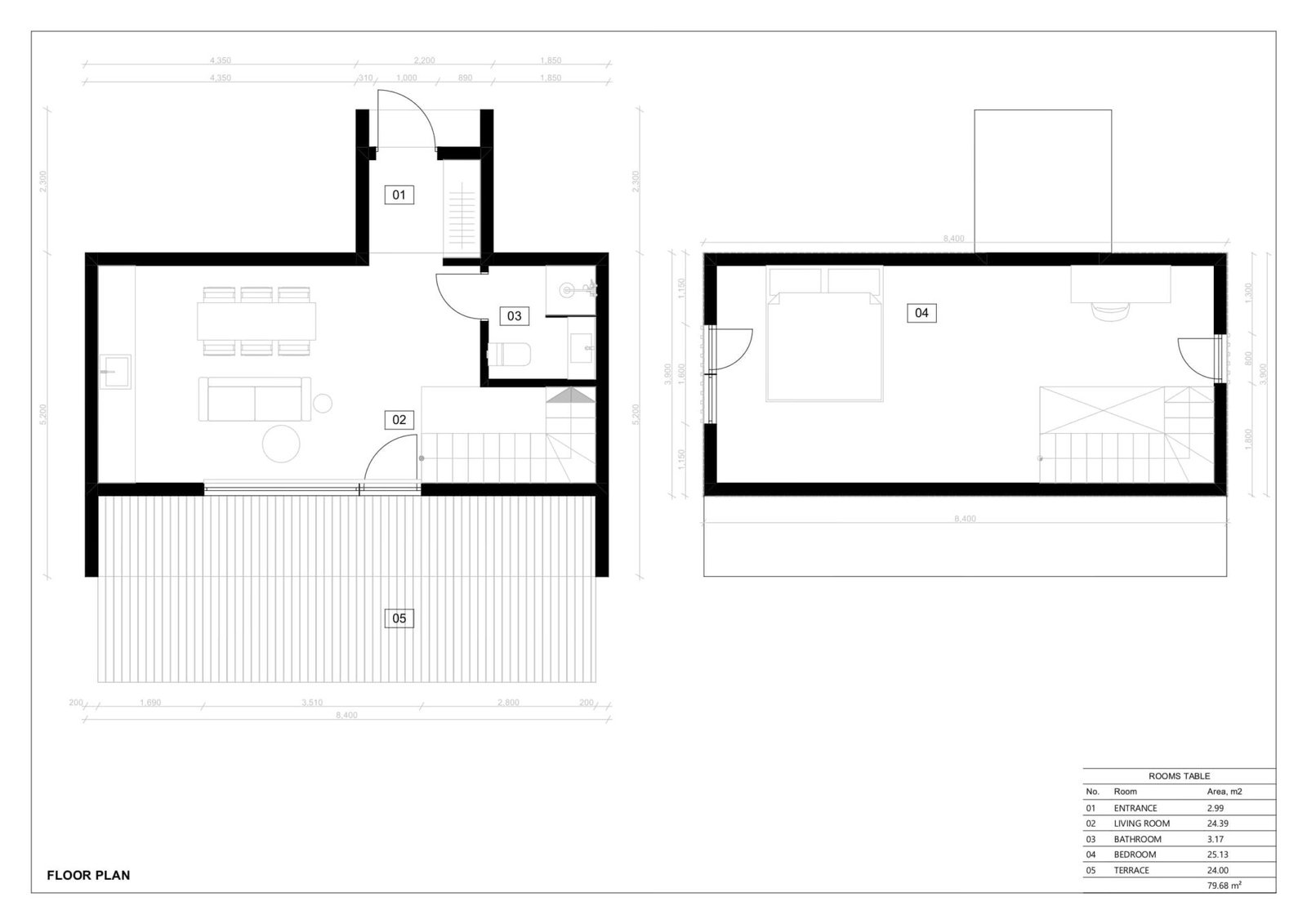 Interior – natural wooden siding, 50mm insulation + laminate, internal doors